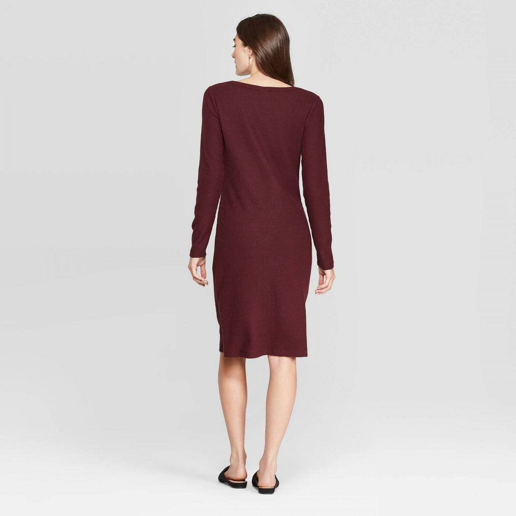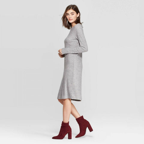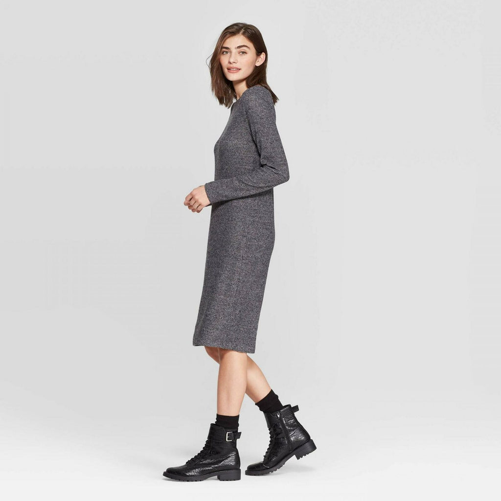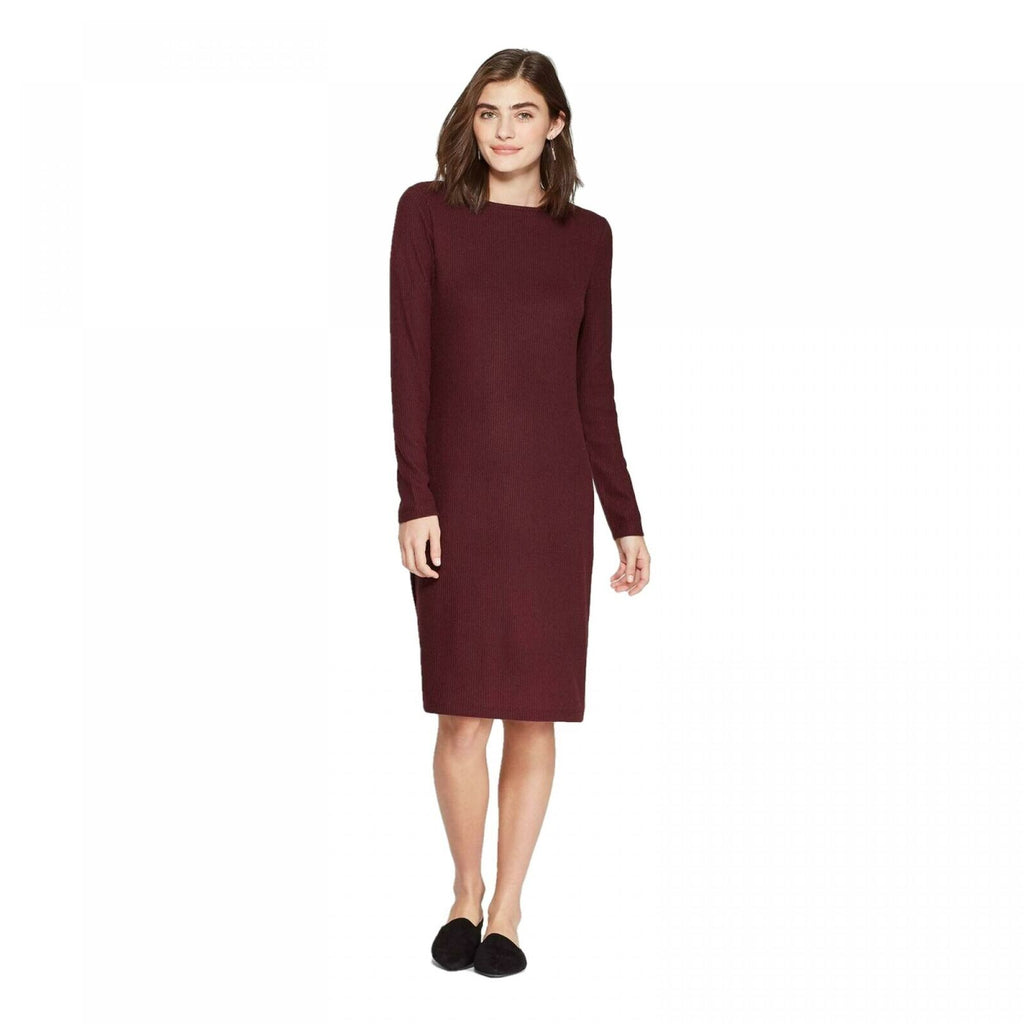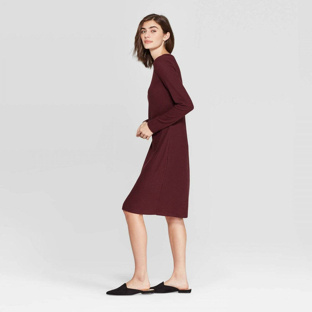Whether you're headed to work or getting ready for date night, style yourself a simply sleek look with the Long-Sleeve Crewneck Rib-Knit Dress from A New Day. This long-sleeve dress is cut in a semi-fitted silhouette that hits at the knees, giving you a polished look that works just as well for casualwear as it does for more dressed-up ensembles. The lightweight fabric provides you with a comfortable fit, perfect for transitioning from day to night and season to season. Keep things elegantly chic when you wear this dress with pointed-toe mules and a dainty necklace, or bring in some edge with sock booties and a leather jacket.