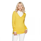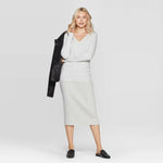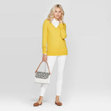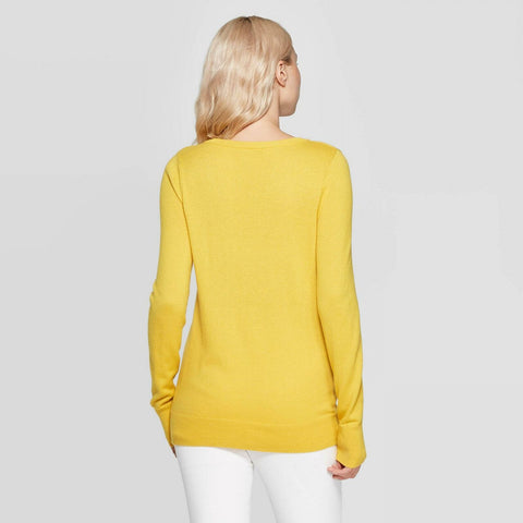 For a versatile addition to your everyday wardrobe, choose the Long-Sleeve Rib-Cuff V-Neck Pullover Sweater from A New Day. This classic knit pullover sweater comes in a solid color for ultra-easy styling, and the long cuffs and relaxed fit make it comfortable to wear. Plus, the V-neck cut creates a figure-flattering look you'll love! Wear it layered over a collared shirt for polished workday look, then pair it with jeans and low-rise sneakers or flats for a comfy-casual weekend look you'll reach for again and again.