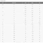 | Size | Width (in.) | Length (in.) |