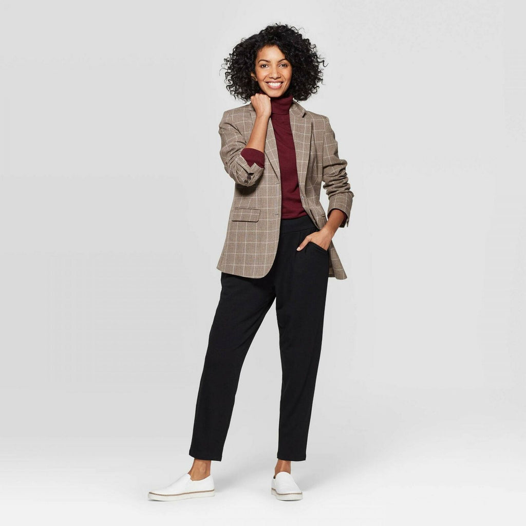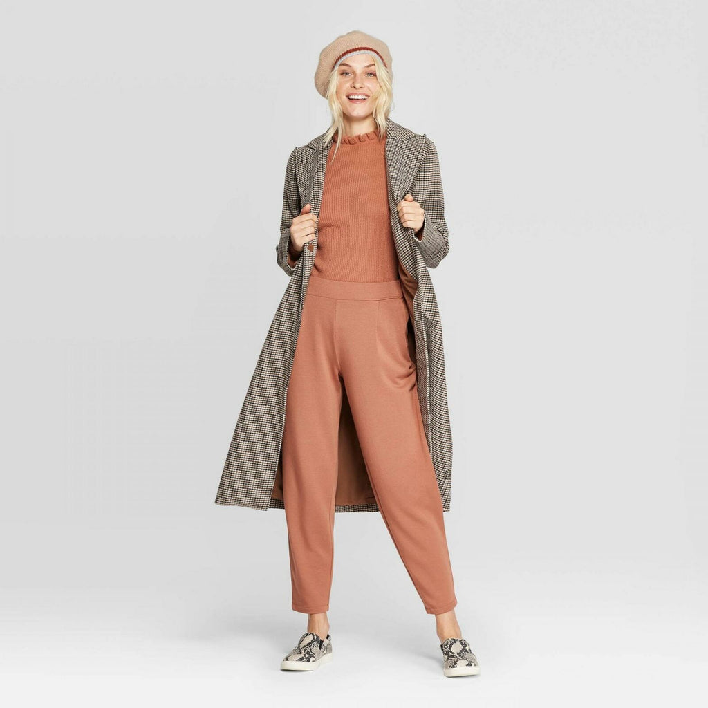 From a day at work to enjoying late-night cocktails with friends, create a beautiful and versatile ensemble with the Mid-Rise Straight-Leg French Terry Pants from A New Day. Boasting a comfy and lightweight French terry construction with a hint of stretch and cut in a straight-leg silhouette, these women's mid-rise pants instantly elevate your style while ensuring you stay comfy and cozy in whatever your day entails. Designed with back elastic and front pleats that provide you a snug fit, these pants feature side pockets for functional flair. Fashioned in a solid hue, you can pair them with anything from a flowy blouse to a mock turtleneck tee to amp up your style game.
