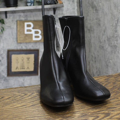 Complete your cooler-weather wardrobe with the standout look of these Pippa Stretch Boots from A New Day. Boasting a cushioned insole, soft lining and D-toe style, these medium-width ankle boots give you both style and comfort. Set on a 2.75-inch block heel for a statement lift in your height, these faux-leather boots have a side zipper for easy wear and a secure fit. A New Day: Style that goes wherever you do. Pippa stretch boots 2.75in block heel Cushioned insole and soft lining Side zipper D-toe design Textured outsole Sizing: Womens Fabric Name: Faux Leather Care and Cleaning: Clean With Mild Detergent Footwear Lining Material: 100% Polyester Construction: Cushioned Insole Footwear Insole Material: 100% Polyurethane Features: Zipper Height Type: Ankle Toe Style: D Toe Footwear Upper Material: 100% Polyurethane Footwear Outsole Material: 100% TPR (Thermoplastic Rubber) Heel: Approximately 2.75 Inches Block Heel Boot Shaft Circumference: Approximately 10.0 Inches Boot Shaft Height: Approximately 6.0 Inches Shoe Width: Medium Footwear toe openness: Closed Toe Footwear outsole details: Textured Outsole