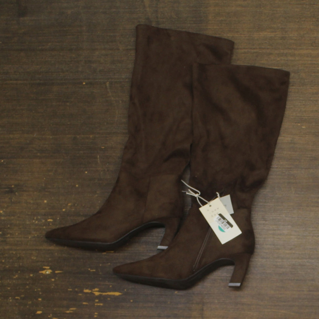 Elevate your cool-weather outfits with these Raye Tall Dress Boots from A New Day. These knee-length boots boast a cushioned insole and a breathable upper to keep you moving through any occasion in absolute comfort. Set on a 2.5-inch stiletto heel for a statement lift to your height, these dress boots have a side zipper for easy wear.A New Day: Style that goes wherever you do. Knee-length dress boots 2.5in stiletto heel Cushioned insole Pointed toe Side zipper closure Sizing: Womens Care and Cleaning: Clean With Mild Detergent Footwear Lining Material: 100% Polyester Construction: Cushioned Insole Footwear Insole Material: 100% Polyurethane Features: Zipper Height Type: Knee Toe Style: Pointed Toe Footwear Upper Material: 100% Polyester Footwear Outsole Material: 55% Polyester and 45% TPR (Thermoplastic Rubber) Heel: Approximately 2.5 Inches Stiletto Heel Boot Shaft Circumference: Approximately 15.0 Inches Boot Shaft Height: Approximately 15.0 Inches Shoe Width: Medium Footwear toe openness: Closed Toe Footwear outsole details: Flocked Outsole