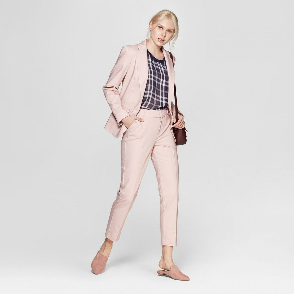 Spice up your wardrobe with some modern flair with these Straight-Leg Slim Ankle Pants from A New Day. Featuring a mid-rise waist and figure-flattering slim-fit cut, these pants cut a modern, feminine silhouette. On-trend ankle-length hems and solid color options add a modern update to classic dress trousers. A cotton-blend fabric with added spandex ensures you can rock your style all day in confidence and comfort. These solid-color pants pair well with patterned or solid blouses and shirts for lots of unique styling opportunities, no matter if you're heading to the office, home for a family dinner, or out for the night with your friends.