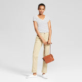 For a versatile pair of bottoms you can easily dress up or down, you won't go wrong with these Slim Chino Pants from A New Day. Made from a soft cotton fabric with added spandex, these slim-fit chino pants will make a great addition to any outfit. Whether you wear them with a white V-neck, blazer and pumps for a confident work outfit or with a bell-sleeve blouse and slip-on sneakers for a casual weekend look, they'll be sure to keep you stylish and comfortable wherever your day takes you.