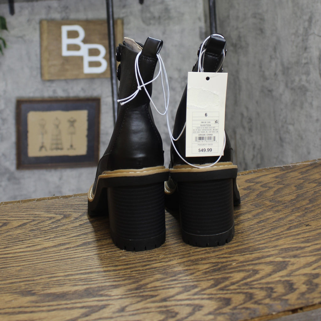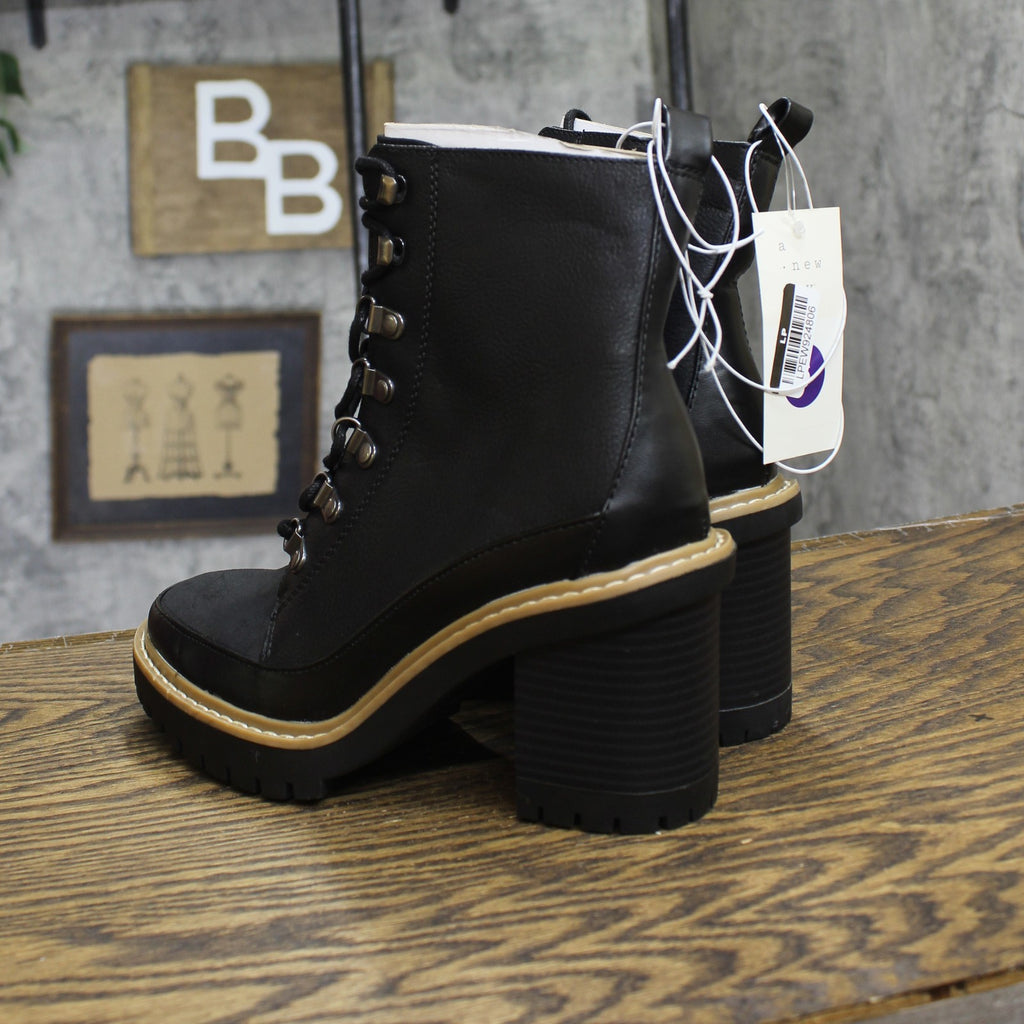 Elevate your layered looks with these Tessa Winter Boots from A New Day. These ankle boots are fashioned with a solid-color faux-leather upper with paneled construction, a contrast-color midsole with stitched detailing, and an elaborate lace-up design with metal D-loops on the front for a chic look. These medium-width boots have a classic round toe, a cushioned insole and heel, a flexible outsole, and a three-inch block heel for a statement height lift. Pair them with anything from dresses to jeans and a button-down to complete the look.A New Day: Style that goes wherever you do. Winter ankle boots 3in block heel Faux-leather upper Cushioned insole and heel Lace-up front and back pull tab Round toe and flexible outsole Sizing: Womens Care and Cleaning: Air Dry Footwear Lining Material: 100% Polyester Construction: Cushioned Heel, Cushioned Insole Footwear Insole Material: 100% Polyurethane Features: Lace Up Height Type: Ankle Toe Style: Round Toe Footwear Upper Material: 100% Polyurethane Footwear Outsole Material: 100% TPR (Thermoplastic Rubber) Heel: Approximately 3.0 Inches Block Heel Boot Shaft Circumference: Approximately 10.0 Inches Boot Shaft Height: Approximately 5.0 Inches Shoe Width: Medium Footwear toe openness: Closed Toe Footwear outsole details: Flexible Outsole