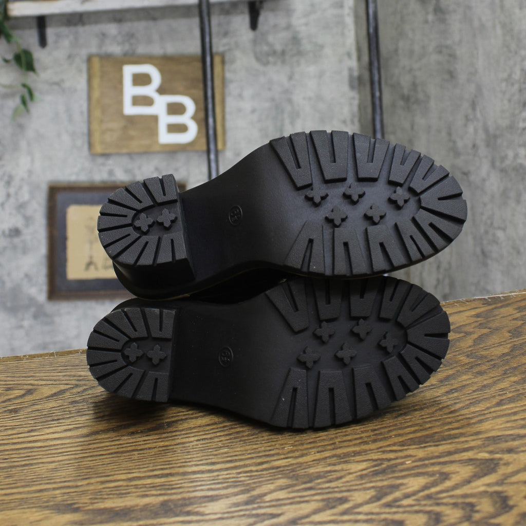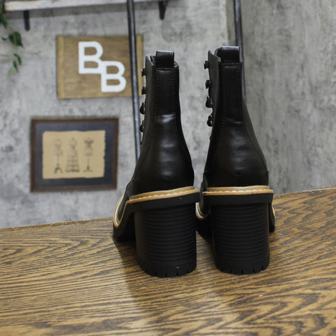 Elevate your layered looks with these Tessa Winter Boots from A New Day. These ankle boots are fashioned with a solid-color faux-leather upper with paneled construction, a contrast-color midsole with stitched detailing, and an elaborate lace-up design with metal D-loops on the front for a chic look. These medium-width boots have a classic round toe, a cushioned insole and heel, a flexible outsole, and a three-inch block heel for a statement height lift. Pair them with anything from dresses to jeans and a button-down to complete the look.A New Day: Style that goes wherever you do. Winter ankle boots 3in block heel Faux-leather upper Cushioned insole and heel Lace-up front and back pull tab Round toe and flexible outsole Sizing: Womens Care and Cleaning: Air Dry Footwear Lining Material: 100% Polyester Construction: Cushioned Heel, Cushioned Insole Footwear Insole Material: 100% Polyurethane Features: Lace Up Height Type: Ankle Toe Style: Round Toe Footwear Upper Material: 100% Polyurethane Footwear Outsole Material: 100% TPR (Thermoplastic Rubber) Heel: Approximately 3.0 Inches Block Heel Boot Shaft Circumference: Approximately 10.0 Inches Boot Shaft Height: Approximately 5.0 Inches Shoe Width: Medium Footwear toe openness: Closed Toe Footwear outsole details: Flexible Outsole