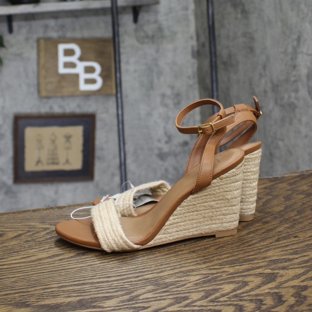 Step out in confidence and style with these Tish Single-Band Ankle Strap Wedge Heels from A New Day. These wedge heels feature an airy, pointed open-toe and backless design that's enhanced by a single band on top for a stylish look. Memory foam insoles keep you walking comfortably, and the 3.75-inch platform heels provide a statement lift to your height. Plus, an ankle strap with a buckle fastener completes the design with a customizable fit.A New Day: Style that goes wherever you do. Single-band wedge heels 3.75in platform heels Memory foam insoles Instep strap Open pointed toe Adjustable ankle strap closure Medium width Sizing: Womens Care and Cleaning: Brush Away Surface Dirt Footwear Lining Material: 100% Polyurethane Construction: Instep Strap Footwear Insole Material: 100% Polyurethane Features: Buckle Toe Style: Pointed Toe Footwear Upper Material: 65% Polyester and 35% Polyurethane Footwear Outsole Material: 55% Polyester and 45% TPR (Thermoplastic Rubber) Heel: Approximately 3.75 Inches Platform Heel Shoe Width: Medium Footwear toe openness: Open Toe Footwear outsole details: Flocked Outsole
