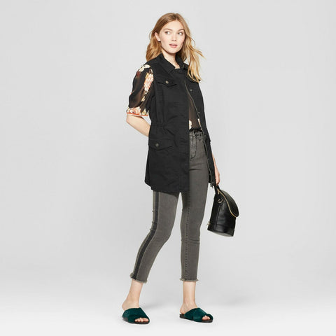 Add an extra layer of style to your look with the Military Vest from A New Day. Falling below the hips, this classic military vest includes a drawstring around the waist that lets you create the right fit and look every time. Layer this zip-front military vest over a long-sleeve floral dress for an edgy twist, or pair with a striped thermal T-shirt, destroyed jeans and combat boots for a cohesive look.