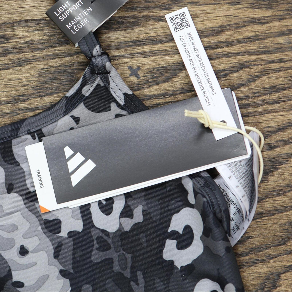 It's not how you feel when you walk into the studio. It's how you feel when you walk out. Push the reset button with this low-impact adidas sports bra. The strappy X-back design has you feeling confident with the flash of skin it shows off. Power mesh and moisture-absorbing AEROREADY combine to keep you dry and comfortable as you extend, flex and tuck