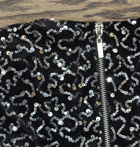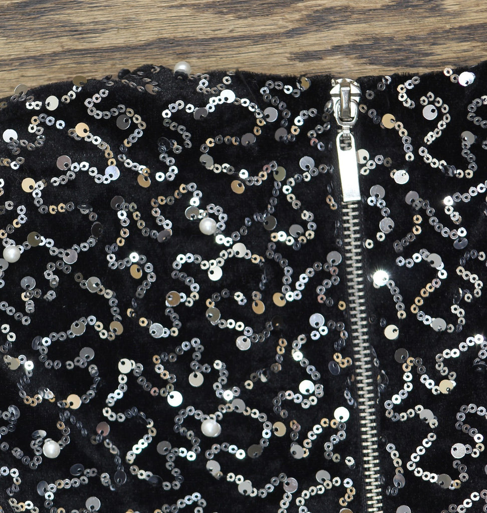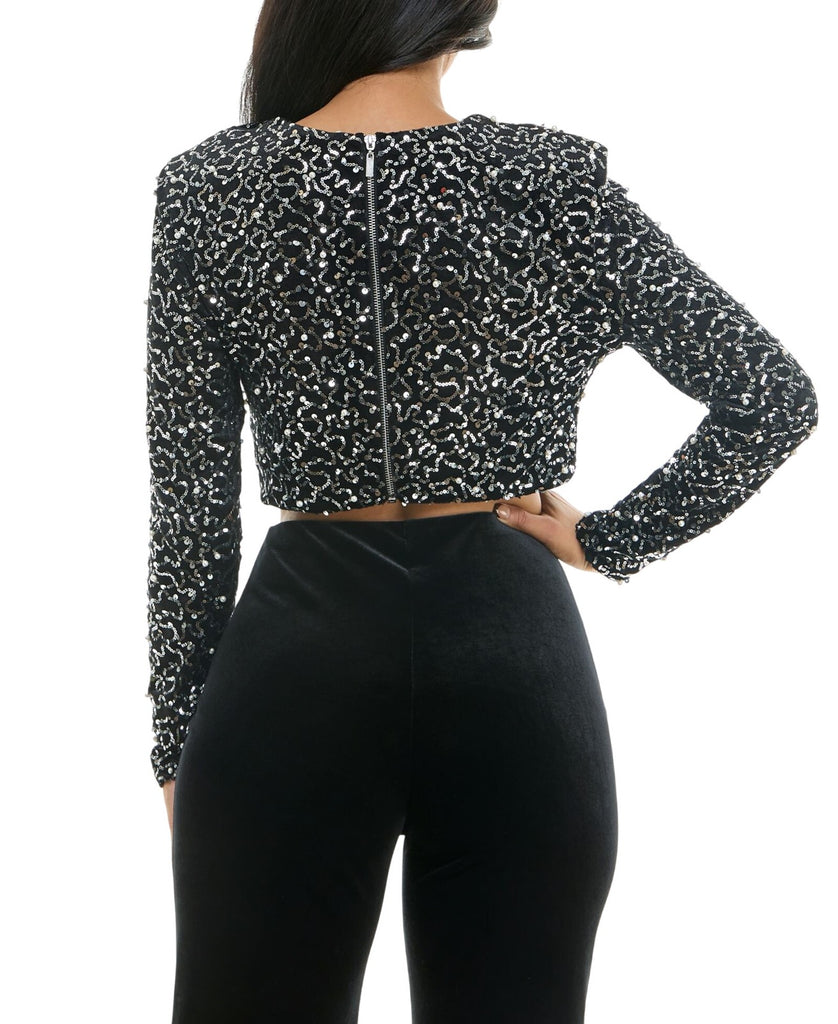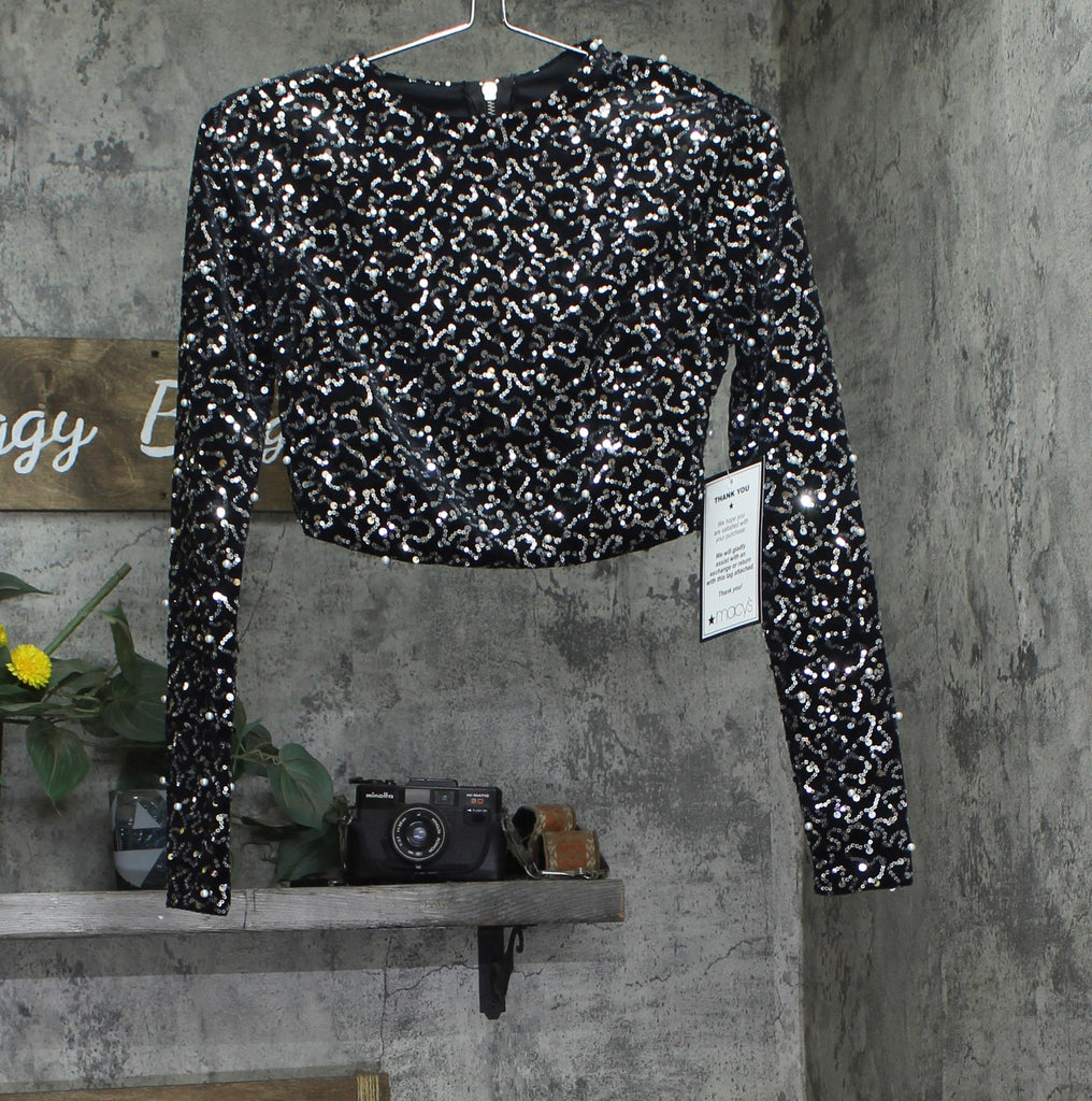 Shine like a disco ball and make a sparkling entrance at your next event with this juniors' all-over sequin top adorned with faux pearl trims from Alex & Sophia.