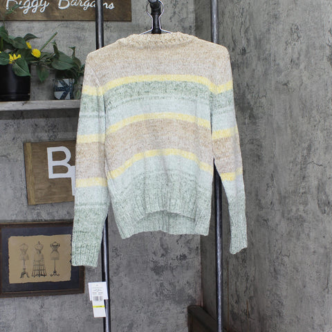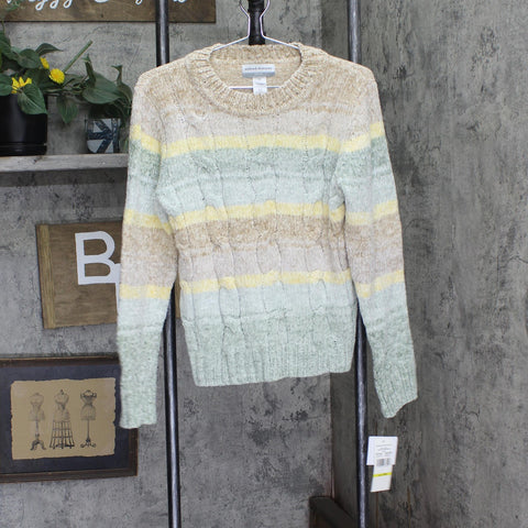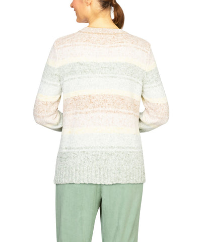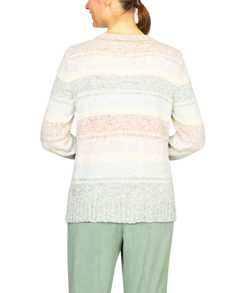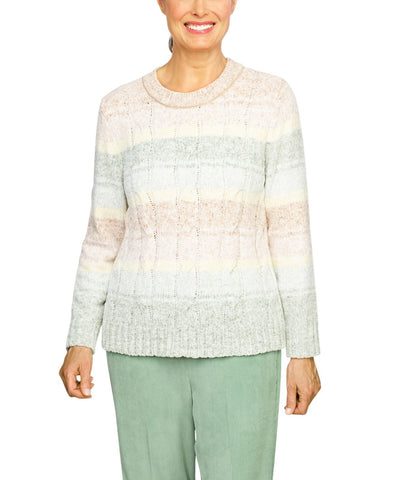 Echo canyon petite soft fabric makes our watercolor ombre women's sweater a cozy addition to your cool-weather closet, cable stitching and ribbed trim complete this comfy sweater.