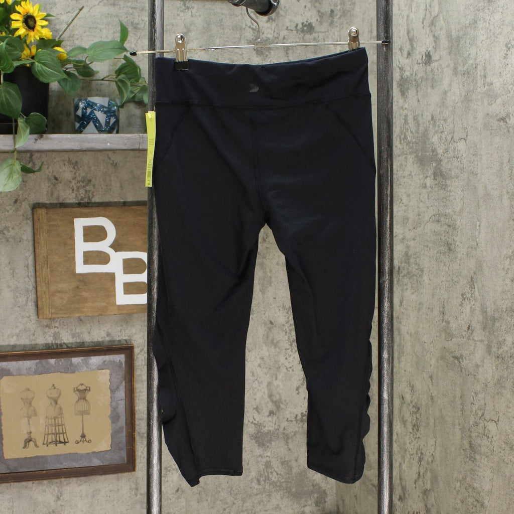 Active days are easy with the high-stretch fabric of these capri leggings that give her the range of motion she needs, while the wide waistband provides modest coverage. The moisture-wicking fabric keeps her comfortable through indoor or outdoor activities, and she can show off her unique sense of style with the range of color and pattern options plus ruched accents along the sides of the knees give her that touch of fun flair she loves.
