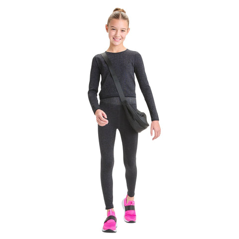 Why we're ALL IN:Long-sleeve T-shirt in a solid color to keep your child stylish and comfy. Made from a moisture-wicking, midweight nylon blend fabric that dries quickly. Tailored in an athletic fit and falls at the waist, while long sleeves and a round neckline complete the look. All in Motion: Inspiring the potential in every body. Made for: workouts, outdoor activities, everyday wear Moves with: midweight, moisture-wicking nylon blend fabric Must-have features: Seamless, round neckline, long sleeves, at-waist length, athletic fit Machine wash and tumble dry Sizing: Kids Material: 91% Nylon, 2% Metallic Fiber, 7% Spandex Hem Style: Plain Hem Fit: Athletic Fit Fabric Name: Knit Garment Style: Long Sleeve, Pullover Length: Cropped Neckline: Round Garment Details: Seamless, Moisture Wicking Fabric Fabric Weight Type: Midweight Fabric Care and Cleaning: Machine Wash, Tumble Dry