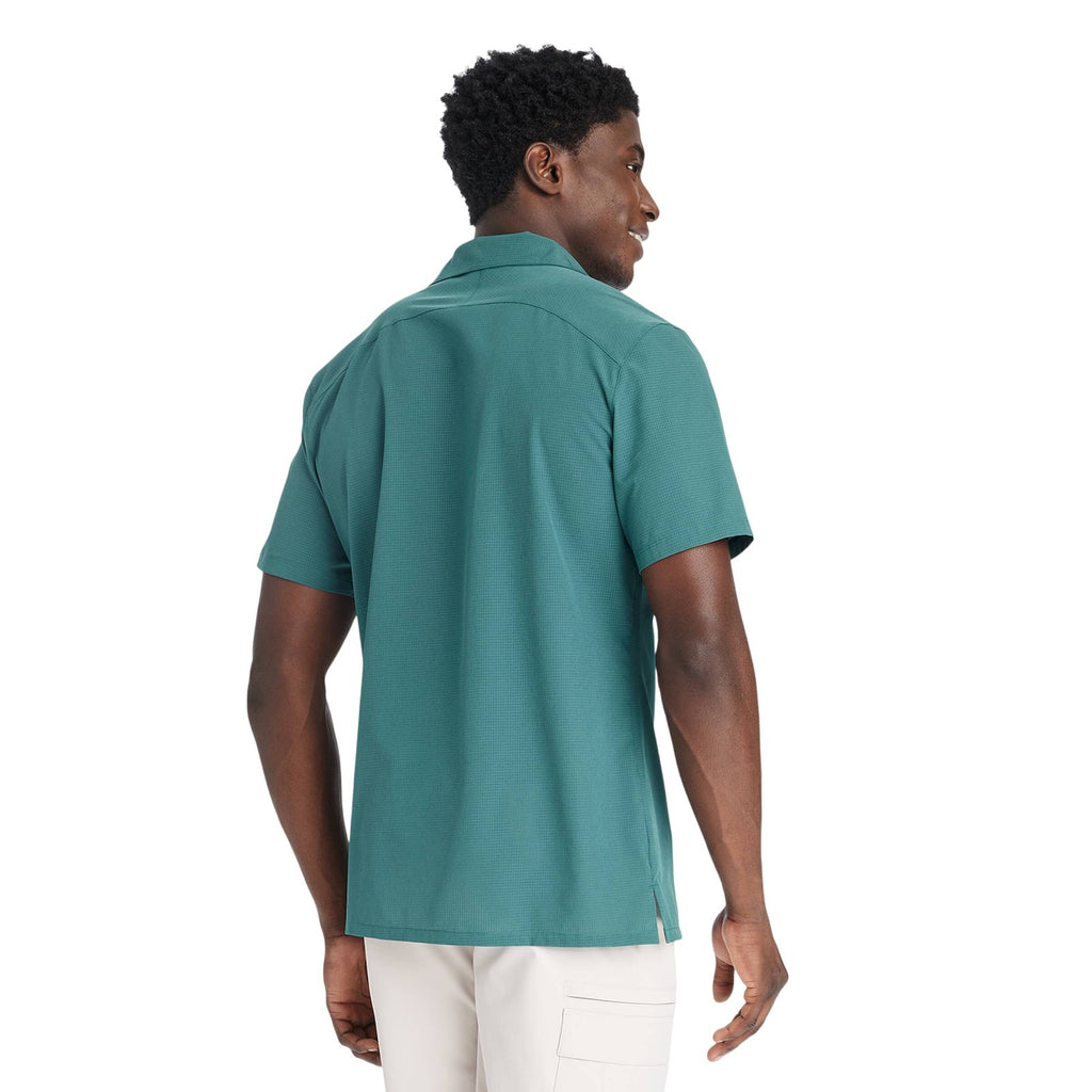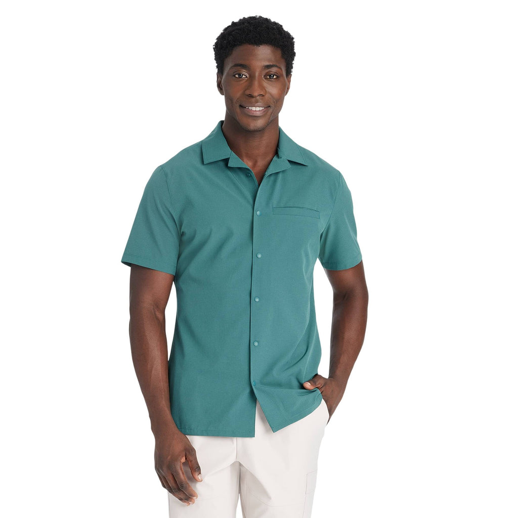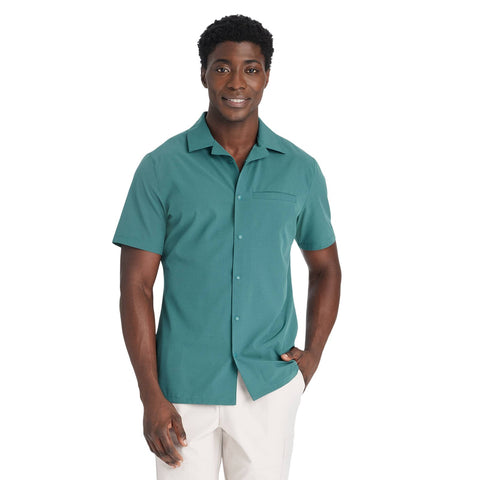 Why we're ALL IN:Textured woven shirt in a solid hue is designed with a notch collar neckline, full-length snap button placket front, welt pocket on the chest and short sleeves for a classic look. Crafted from recycled polyester with added spandex and features quick-drying, moisture-wicking properties to keep you feeling cool and fresh during any activity. It's tailored in an athletic fit that hits below the waist for a sporty aesthetic, and side vents complete the design with a breathable feel.All in Motion: Made for every move, priced for every day. Made for: walking, travel, everyday wear Moves with: lightweight recycled polyester fabric with spandex Must-have features: moisture-wicking and quick-drying properties, notch collar neckline, full-length snap button placket, chest pocket, side vents, below-waist length Machine wash and tumble dry Sizing: Mens Material: 92% Recycled Polyester, 8% Spandex Hem Style: Plain Hem Fit: Athletic Fit Length: Below Waist Garment Style: Short Sleeve, Front Snap Fabric Name: Woven Neckline: Collared Garment Details: Front Pocket, Quick Drying Fabric, Moisture Wicking Fabric Fabric Weight Type: Lightweight Fabric Care and Cleaning: Machine Wash, Tumble Dry