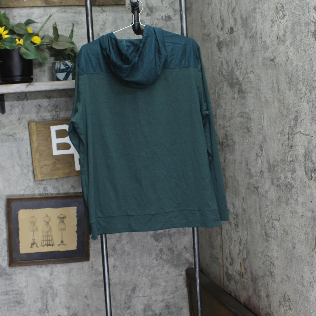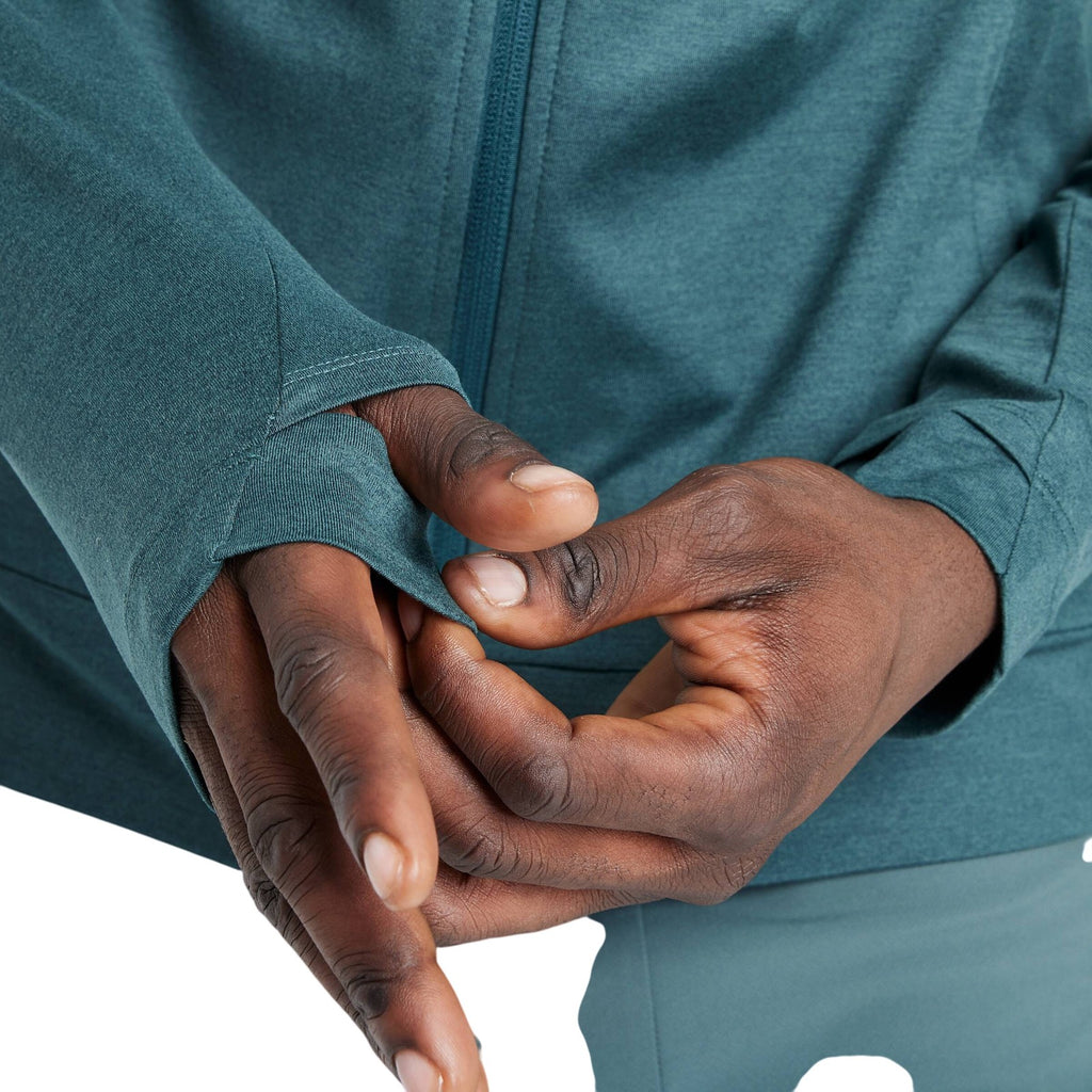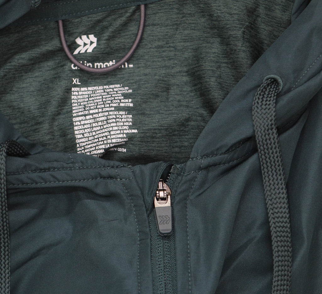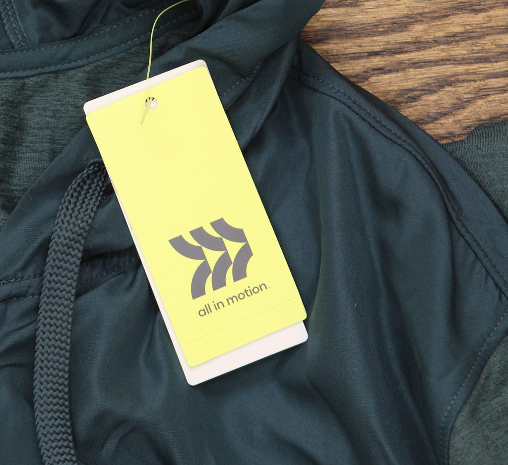 Why we're ALL IN:Soft, stretchy sweatshirt in a solid hue. Features a hooded neckline with a drawstring, a full-length zippered front, side pockets and long sleeves with thumbhole cuffs. Made from midweight jersey fabric with spandex for comfortable wear that moves with you. Boasts moisture-wicking, quick-drying and odor-resistant properties to help keep you nice and cool, as well as a UPF 50+ rating to shield you from harmful UV rays.All in Motion: Made for every move, priced for every day. Made for: cold weather, travel, outdoor activities, everyday wear Moves with: midweight jersey fabric with added spandex Must-have features: moisture wicking, quick drying, UPF 50+, odor-resistant, hooded neckline with drawstring, full-length zippered front, thumbhole cuffs Machine wash and tumble dry Sizing: Mens Material: 86% Recycled Polyester, 14% Spandex Material Lining: 100% Recycled Polyester Hem Style: Narrow Hem Fit: Relaxed Fit Cuff Type: No Cuff Length: At Waist Garment Style: Long Sleeve, Front Full Length Zipper Fabric Name: Jersey Neckline: Hooded Garment Details: Zippered Pocket, Moisture Wicking Fabric, 4-Way Stretch, Quick Drying Fabric, Odor-Resistant Treatment Fabric Weight Type: Midweight Fabric UPF rating: UPF 50+ Garment sleeve style: Basic Sleeve Care and Cleaning: Machine Wash, Tumble Dry