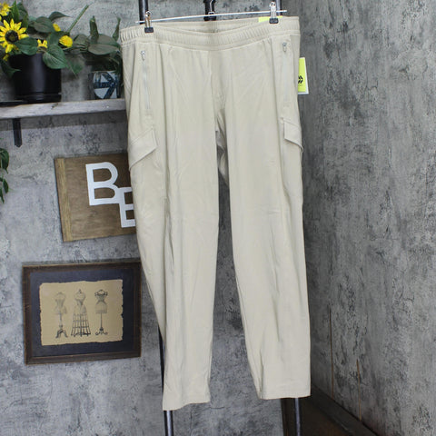 Why we're ALL IN: DWR woven pants in a solid shade tailored in a regular-rise, loose-fit, tapered-leg silhouette. Made from midweight recycled polyester with spandex for flexible comfort that moves and stretches with you. Boast water-resistant properties to keep you feeling dry and fresh during any activity. A flexible drawstring on the elasticized waistband provides a customizable fit, while cargo pockets and zippered side pockets give space for stashing on-the-go essentials. All in Motion: Made for every move, priced for every day.