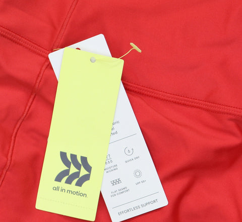 Why we're ALL IN: Effortless-support 7/8 solid-color leggings designed with a high-rise silhouette, hidden pocket and flat seams. Made of midweight interlock fabric with spandex for flexible wear that moves with you. Moisture-wicking and quick-drying properties help keep you feeling cool and fresh during any activity, while the UPF 50+ rated material shields you from harmful UV rays. A wide pull-on waistband completes the design with a stay-put fit. All in Motion: Made for every move, priced for every day. Explore top All in Motion legging fabrics: featuring moisture-wicking, quick-dry performance in a range of styles. 1. Everyday Soft Fabric All in Motion: is perfect for low-intensity workouts & everyday wear. Features lightweight, high-stretch, & luxe, buttery soft fabric. Lengths come in full length or 7/8 length. 2. Dynamic Flex Fabric All in Motion: is perfect for studio, high-intensity training, & everyday wear. Features midweight, brushed fabric, built-in power mesh waistband. Lengths come