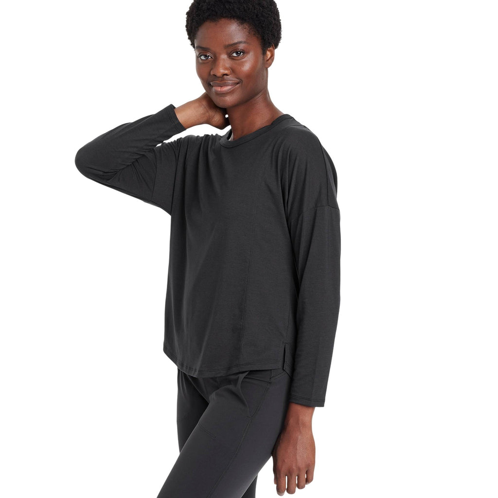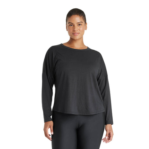 Why we're ALL IN:Leggings-friendly jersey-fabric top with a solid-color finish, pullover design and tunic length. Crafted from midweight recycled polyester-lyocell blend with spandex for comfortable wear that moves and stretches with you. Boasts moisture-wicking and quick-drying properties to keep you feeling cool and fresh during any activity. Tailored in a relaxed-fit silhouette and finished with drop-shoulder long sleeves and a crew neckline with a cut-out accent at the backAll in Motion: Inspiring the potential in every body. Made for: outdoor activities, gym, sports, everyday wear Moves with: midweight recycled polyester-lyocell blend with spandex Must-have features: moisture wicking, quick drying, pullover style, long sleeves, crewneck with cut-out back, relaxed fit, tunic length Machine wash and tumble dry Sizing: Womens Material: 74% Recycled Polyester, 19% Lyocell, 7% Spandex Hem Style: Curved Hem Fit: Relaxed Fit Length: Below Hip Garment Style: Long Sleeve, Pullover Fabric Name: Jersey Neckline: Crew Garment Details: No Pocket, Moisture Wicking Fabric, Quick Drying Fabric Fabric Weight Type: Midweight Fabric Care and Cleaning: Machine Wash, Tumble Dry