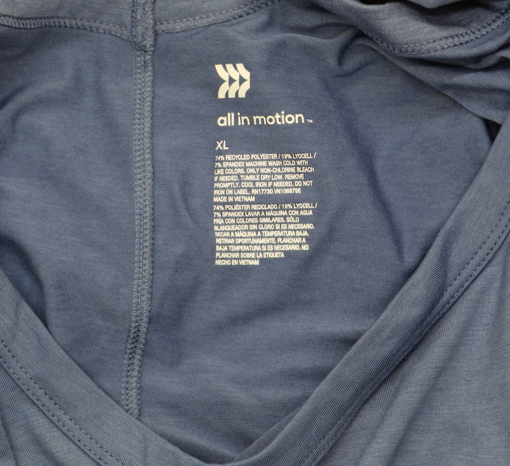 Why we're ALL IN:Leggings-friendly jersey-fabric top with a solid-color finish, pullover design and tunic length. Crafted from midweight recycled polyester-lyocell blend with spandex for comfortable wear that moves and stretches with you. Boasts moisture-wicking and quick-drying properties to keep you feeling cool and fresh during any activity. Tailored in a relaxed-fit silhouette and finished with drop-shoulder long sleeves and a crew neckline with a cut-out accent at the backAll in Motion: Inspiring the potential in every body. Made for: outdoor activities, gym, sports, everyday wear Moves with: midweight recycled polyester-lyocell blend with spandex Must-have features: moisture wicking, quick drying, pullover style, long sleeves, crewneck with cut-out back, relaxed fit, tunic length Machine wash and tumble dry Sizing: Womens Material: 74% Recycled Polyester, 19% Lyocell, 7% Spandex Hem Style: Curved Hem Fit: Relaxed Fit Length: Below Hip Garment Style: Long Sleeve, Pullover Fabric Name: Jersey Neckline: Crew Garment Details: No Pocket, Moisture Wicking Fabric, Quick Drying Fabric Fabric Weight Type: Midweight Fabric Care and Cleaning: Machine Wash, Tumble Dry