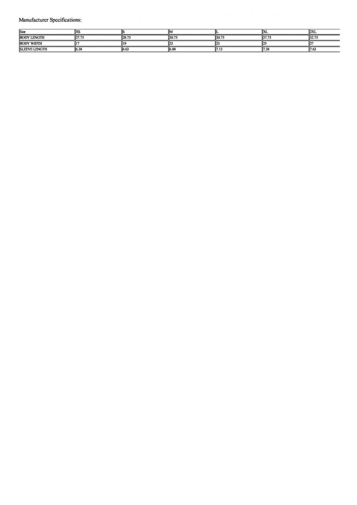 | BODY LENGTH | 27.75 | 28.75 | 30.75 | 30.75 | 37.75 | 32.75 |