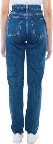 Vintage inspired high rise mom jean featuring a straight leg that tapers in at the ankle. Finished with a zip fly and four pockets. This 14 ounce denim is rigid for a more authentic, vintage feel. Our best selling jean. Everyday staple. Machine wash cold. Do not bleach. Tumble dry low. Cool iron. Do not dry clean. American Apparel is an iconic brand with a unique history and distinct culture that has gained a fiercely loyal customer following and tremendous Global brand awareness. We operate at the intersection of style, integrity, and ethics from start to finish