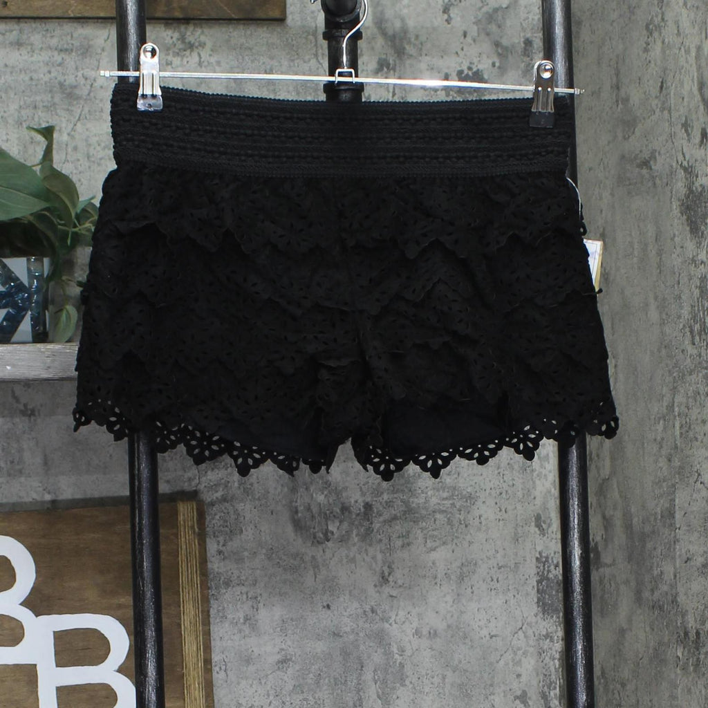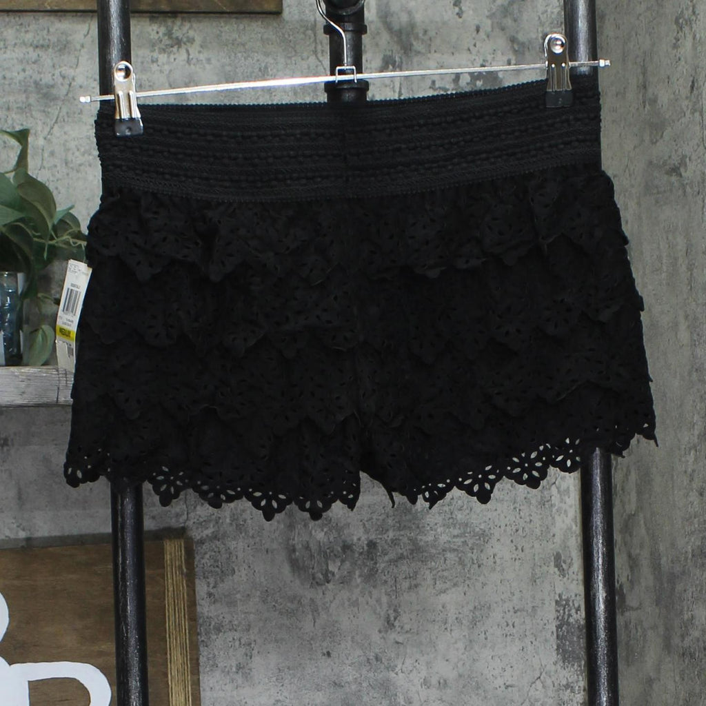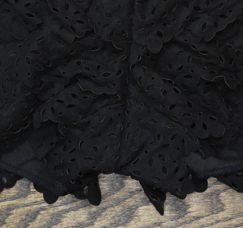 American Rag Cie Tiered Laser-Cut Faux-Suede Cropped Shorts Classic Black M