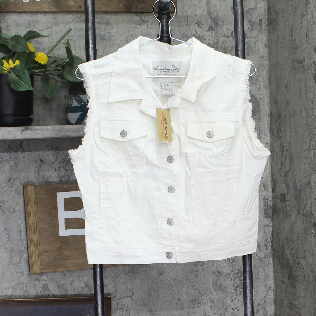 American Rag Womens Distressed Button Up Denim Vest White Wash L