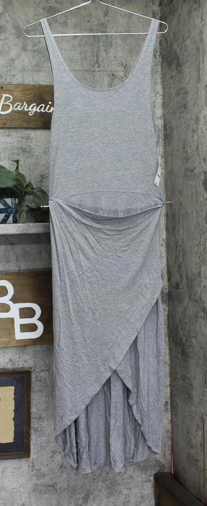 Tied at the side with free-spirited flair, this knit midi dress delivers a smart casual look from And Now This. Falls below the knee to lower calf Scoop neck; fitted midi silhouette Pullover styling Scoop back; side tie with ruched detail; overlapping skirt with tulip finish