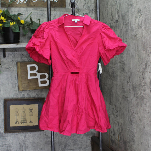 And Now This Womens Cutout Fit & Flare Puff Sleeve Dress Pomegranate Red M
