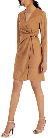 Anne Klein Womens Faux Suede Knee Length Wrap Dress 10849273 Brown XL
