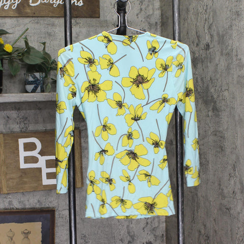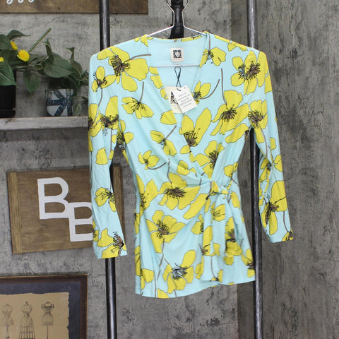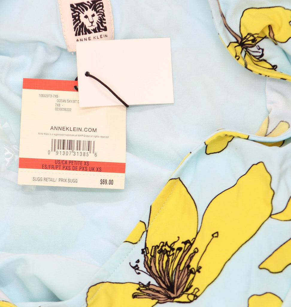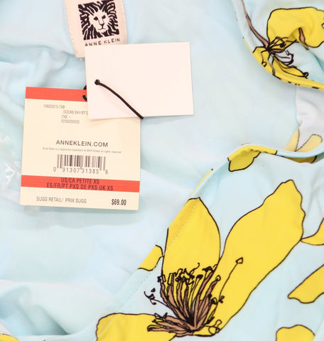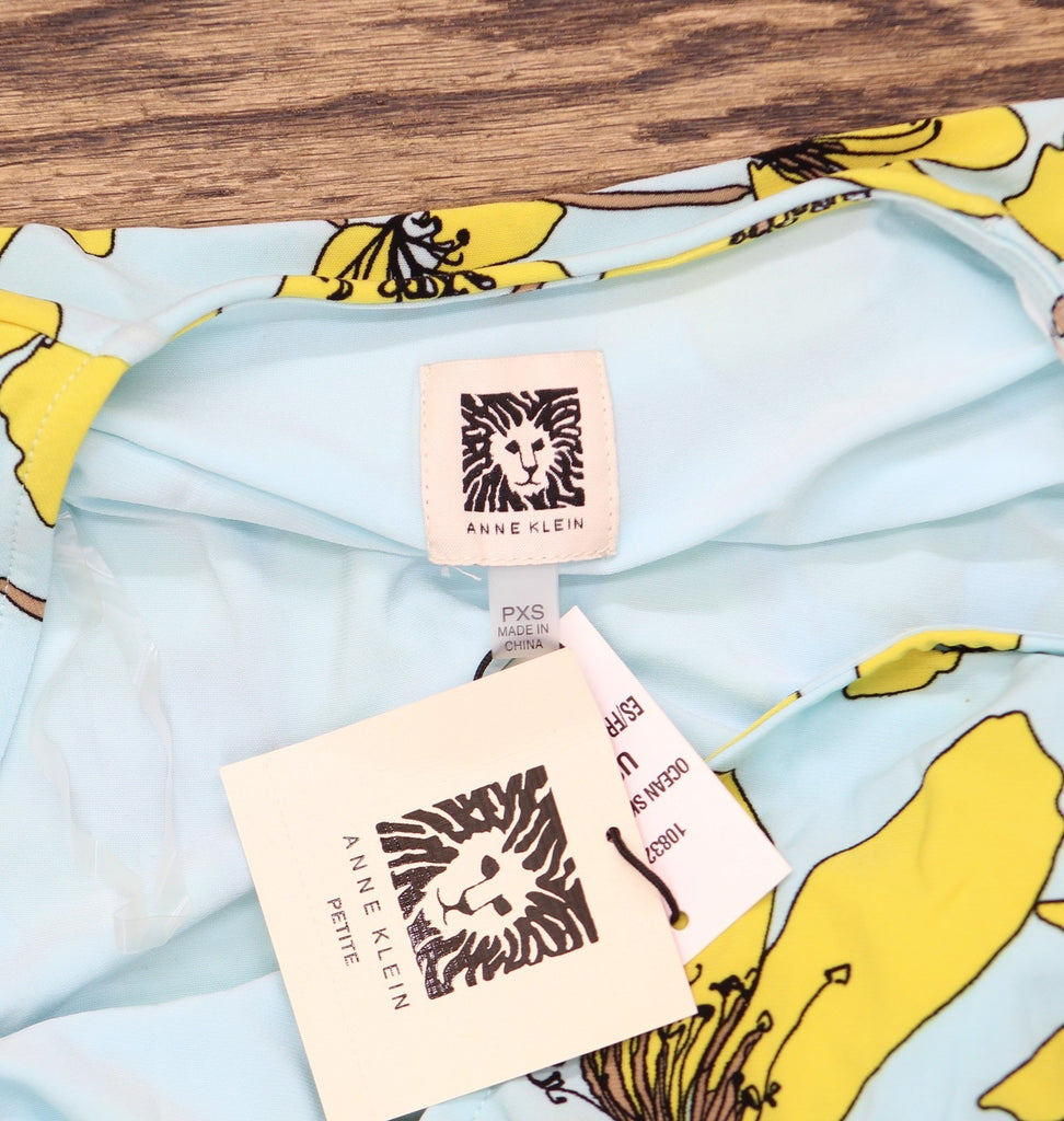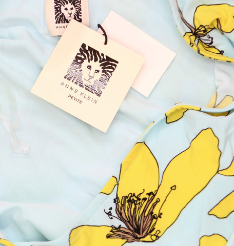 A bright spot in a weekday wardrobe, this Anne Klein petite top in vivid floral knit features a ruched tie at the side.