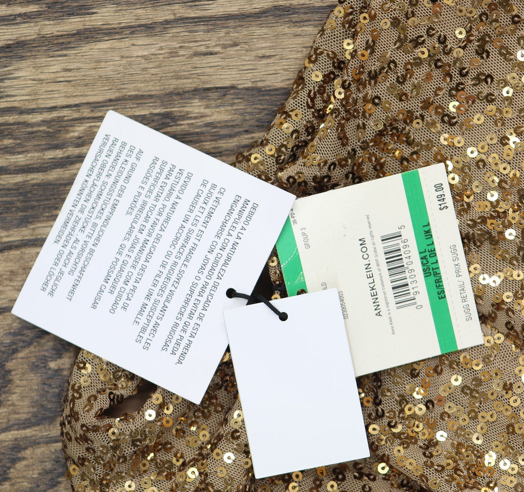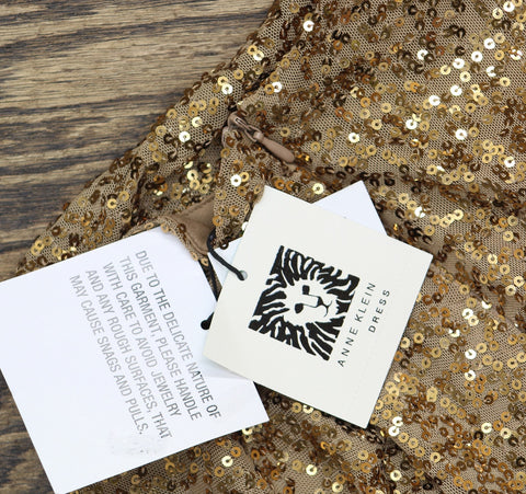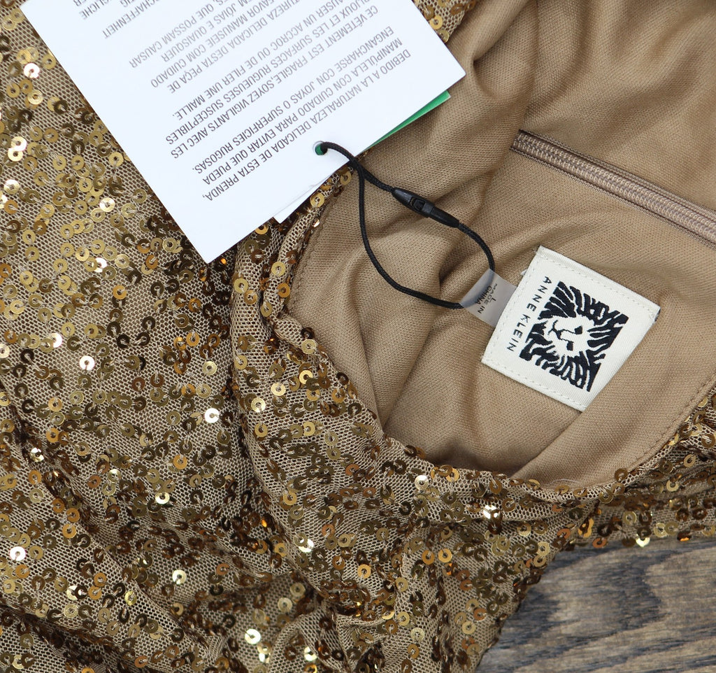 Anne Klein's midi dress shines with sparkling sequins throughout, while draped details at the neck and waist lend a curve-enhancing effect. Features Approx. 49" long from center back neck to hem. Length is based on a size medium and varies 1/4" between sizes Draped mock neck Falls below the knee to lower calf Back zip closure Allover sequins; gathered at side waist; slit at side hem Sleeveless Lined 95% polyester, 5% elastane Dry clean Imported