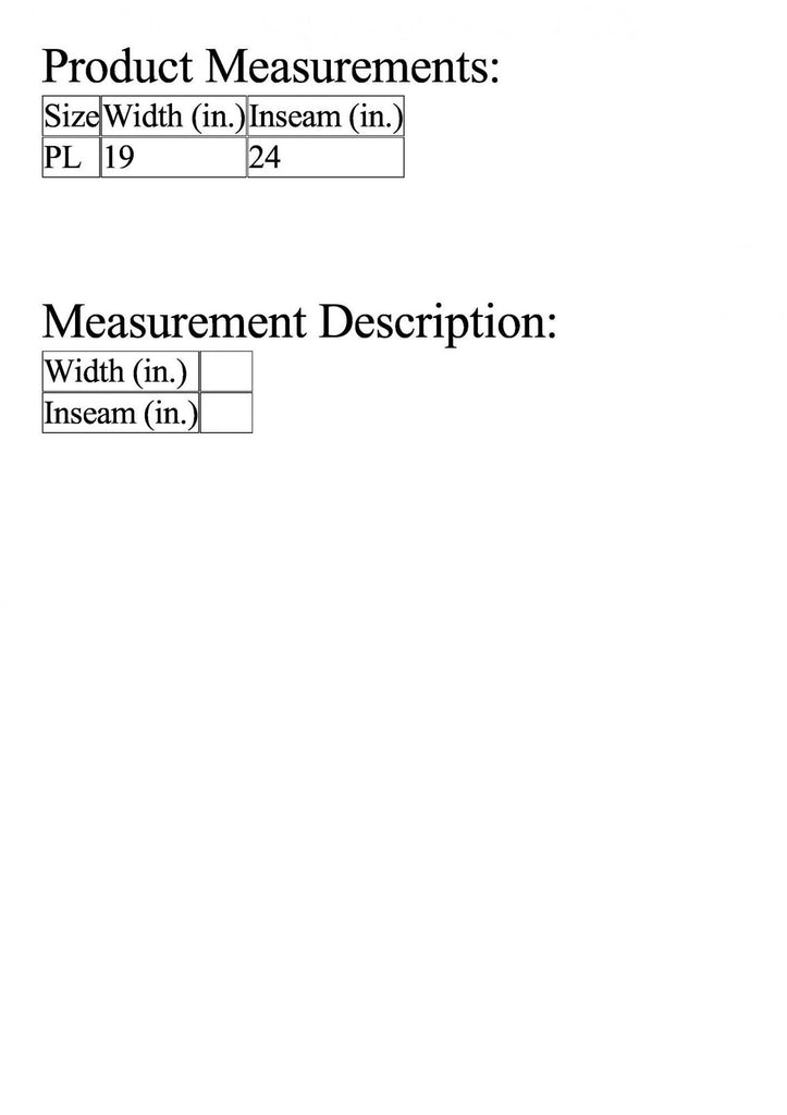 | Size | Width (in.) | Inseam (in.) |