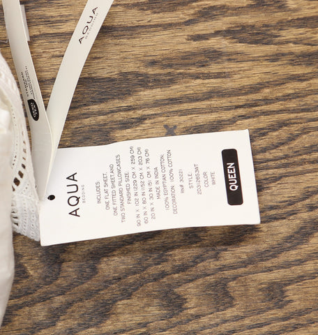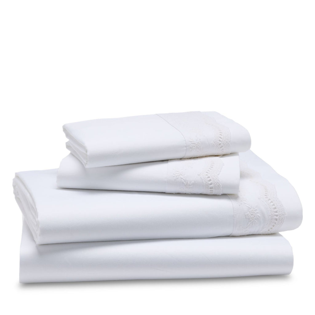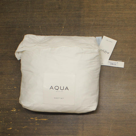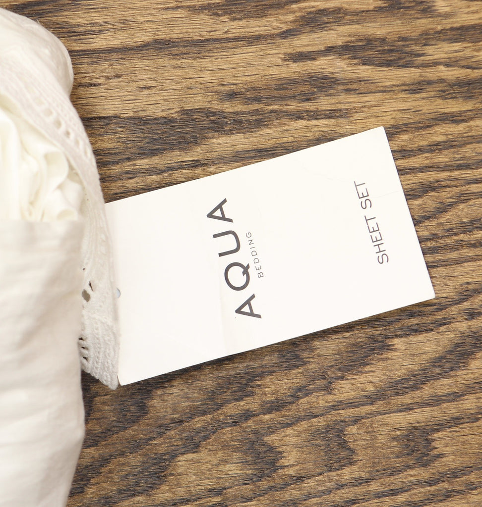 Includes 4 pieces. 1 Flat Sheet, 1 Fitted Sheet, 2 Pillowcases. Trimmed in delicate lace details, Aqua's Egyptian cotton bedding collection is full of subtly refined style.