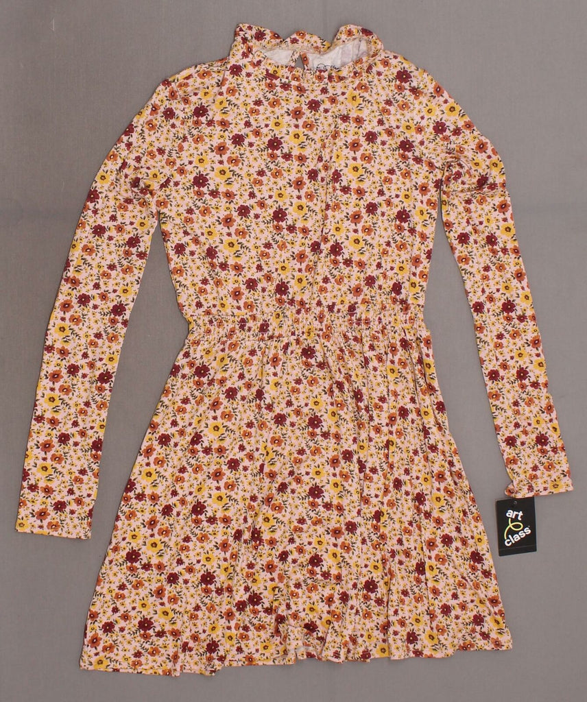 She'll take on any family outing or day at school looking her stylish best with this Long-Sleeve Mock-Neck Dress from art class. Crafted from soft and stretchy fabric for a comfy fit, this long-sleeve dress comes in a flowing silhouette for effortless wear. It comes in a variety of prints and patterns to suit her stylish mood, and lettuce-edge detailing on the high neckline make this long-sleeve dress a pretty choice for any occasion. She can wear this long-sleeve high-neck dress with flats or sneakers for a cool, comfy look, then layer it with a cardigan, tights and booties when cool weather rolls in.