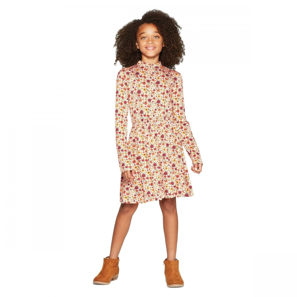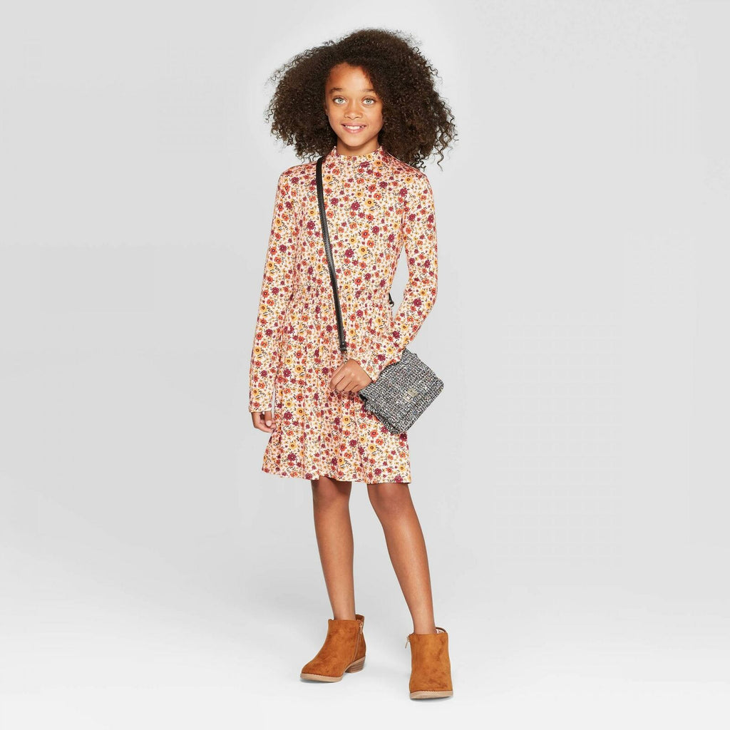 Girls' mock-neck dress adds sweet style to her wardrobe