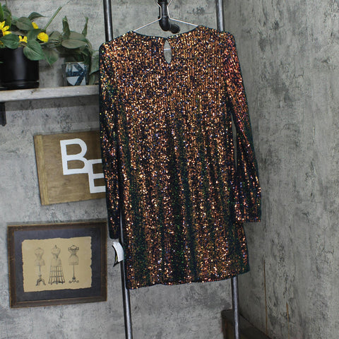 Add extra sparkle to your kid's wardrobe with this Long-Sleeve Sequin A-Line Dress from art class. Made of recycled polyester and spandex, this dress features allover sequins for a dazzling look. This dress has a scoop neckline and a back keyhole button for ease of wear. Plus, the long sleeves complete the design with a classic aestheticart class: One-of-a-kind looks for the one and only you. Sequined A-line dress Made of recycled polyester-spandex blend mesh fabric Scoop neckline with back keyhole button Long sleeves At-knee length Sizing: Girls Material: 95% Recycled Polyester, 5% Spandex Garment Style: Long Sleeve, Behind the Neck Button Fabric Name: Mesh Neckline: Scoop Garment Length: At Knee Total Garment Length: 27 Inches Garment Details: No Pocket Garment back type: Plain Fabric Weight Type: Midweight Fabric Garment sleeve style: Basic Sleeve Care and Cleaning: Machine Wash, Line Dry or Lay Flat to Dry