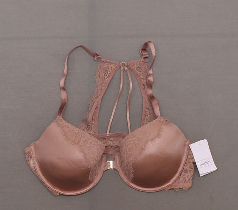 Bring playful, feminine detail to your core collection of intimates with the Ace Lightly Lined Lace Racerback Bra from Auden. With easy-to-adjust front straps and a secure front closure, you can find just the right fit for support and security. Lightly lined cups offer smooth shaping, and a racerback design stays hidden beneath your clothing for an unencumbered look. You'll love the thoughtful detail of lace trim on the cups joined by a lace band and back straps, while two thin straps add another touch of intricate style. Plus, this bra has been specially designed to reduce wire poke-through, letting you take on your day with comfort, confidence and ease.