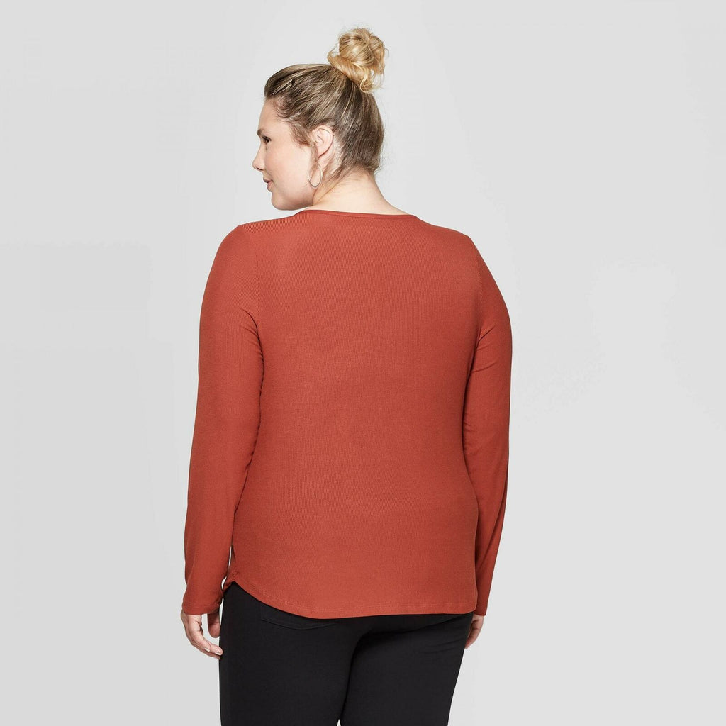 The Long-Sleeve V-Neck Rib-Knit Henley T-Shirt from Ava & Viv is a classic, comfy wardrobe essential. The solid fashion tee hits below the waist and has a Henley construction with a plunging V-neckline and front placket for added interest. Rib-knit fabric and breathable material with a hint of spandex finish off the classic design. Sporting a subtly curved hemline, this regular-fit collarless tee will look great tucked into everything from jeans to capris to shorts and beyond.