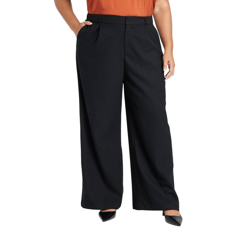 Make sure your office look stays on-trend with these High-Rise Wide Leg Trousers from Ava & Viv. The high-rise trousers are made of lightweight woven fabric with added spandex for comfortable wear that moves with you. Complete with front and side pockets for functional flair, these high-rise trousers have a fly hook closure and back elastic to help keep them secure around the waist. Coordinate it with different tops, button-downs or blouse to create a range of outfits. High-rise wide leg trousers Recycled polyester fabric Fly hook and zipper closure Back elastic Front pockets Full length Sizing: Womens Plus Material: 64% Recycled Polyester, 34% Rayon, 2% Spandex Fit: Wide Leg with a Relaxed Fit Closure Style: Fly Hook and Zipper Rise: High Rise Inseam Length: 30.5 Inches Fabric Name: Woven Garment Length: Full Garment Details: Front Pocket, Back Elastic Fabric Weight Type: Lightweight Fabric Stretch: Ultimate Stretch Care and Cleaning: Machine Wash, Tumble Dry