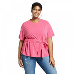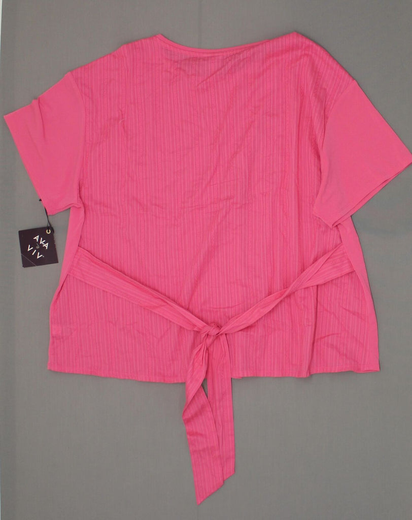 Add a pop of color to any day with the Knit Woven Tie Short-Sleeve T-Shirt from Ava & Viv. Perfect for everyday wear, this pink short-sleeve tee offers just the right combination of comfort and style with the soft fabric construction and front tie detail. Whether you pair it with jeans and sneakers or ankle pants and flats, you'll love the versatile styling options this T-shirt brings to your wardrobe.