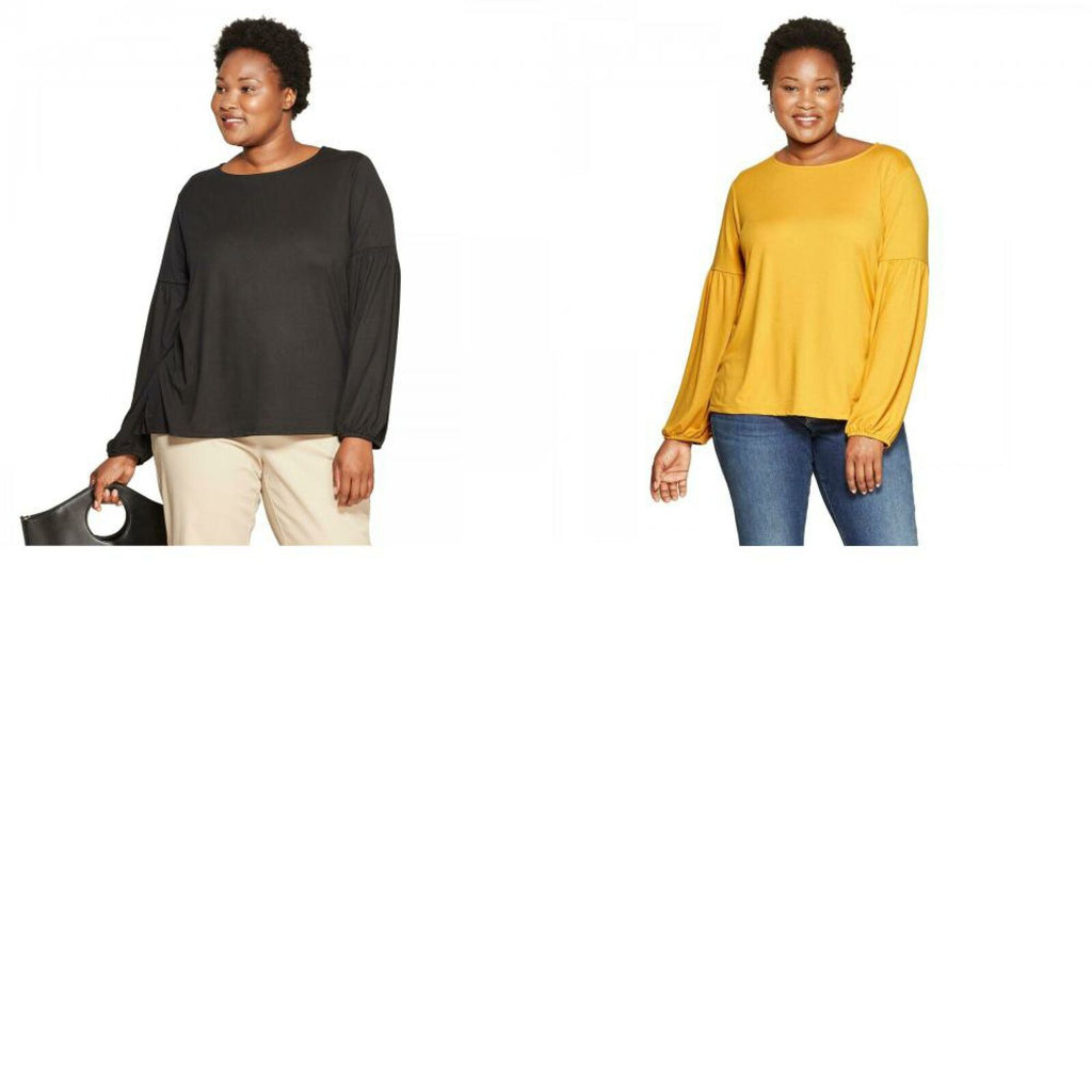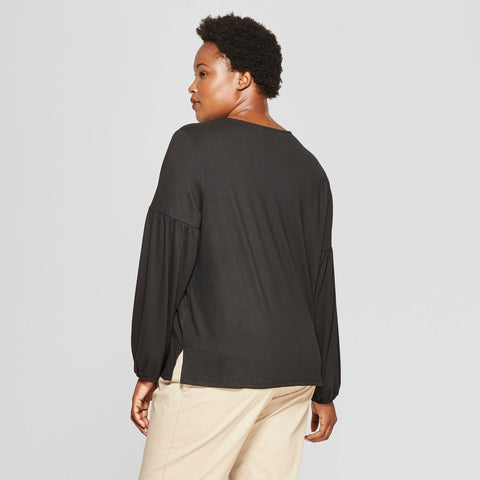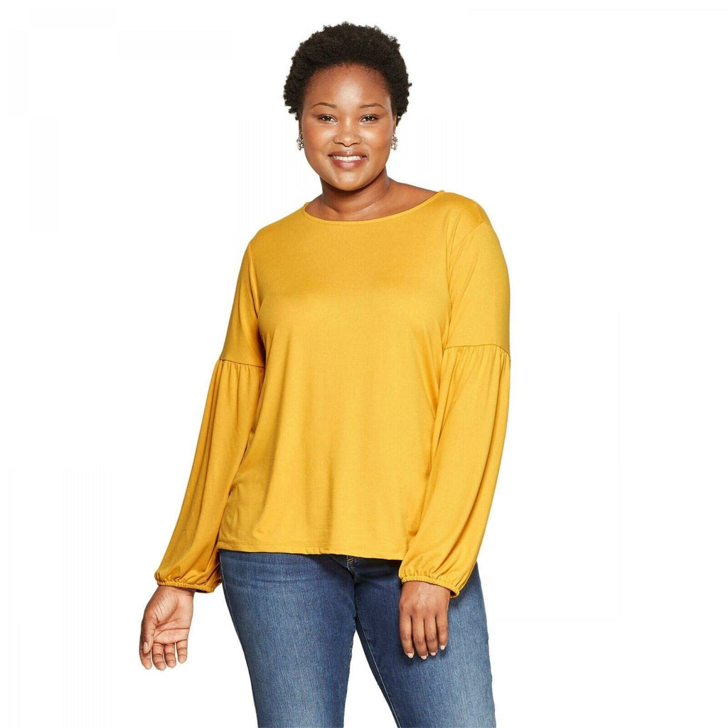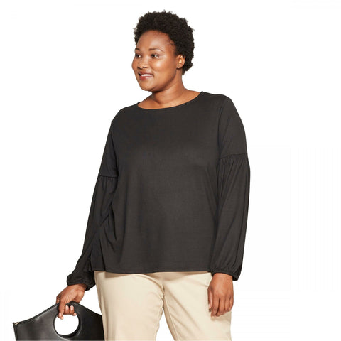 The Long-Sleeve Knit Top from Ava & Viv gives you the variety of styling options you've been looking for. This simple top gets a fashion-forward upgrade with the bishop sleeves, creating a stand-out finishing touch. Keep your look casual when you pair this long-sleeve flowy top with velvet jeans and ballet flats, or dress it up with a pleated midi skirt and open-toe pumps.
