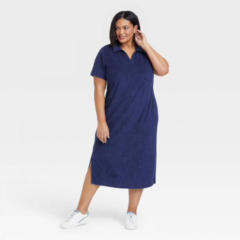 The Short-Sleeve Terry Polo Dress from Ava and Viv makes a stylish and versatile pick for a grab-and-go outfit for casual brunch with friends or a special occasion. Made from lightweight fabric for comfortable wear, this short-sleeve dress features a collared neckline with a midi length, making getting ready for any day an effortless affair. Plus, the side slit offers more room for movement and relaxed, breezy flair. Style it with sneakers or sandals, or layer it up with a wrap or long cardigan when stepping out in cooler weather.