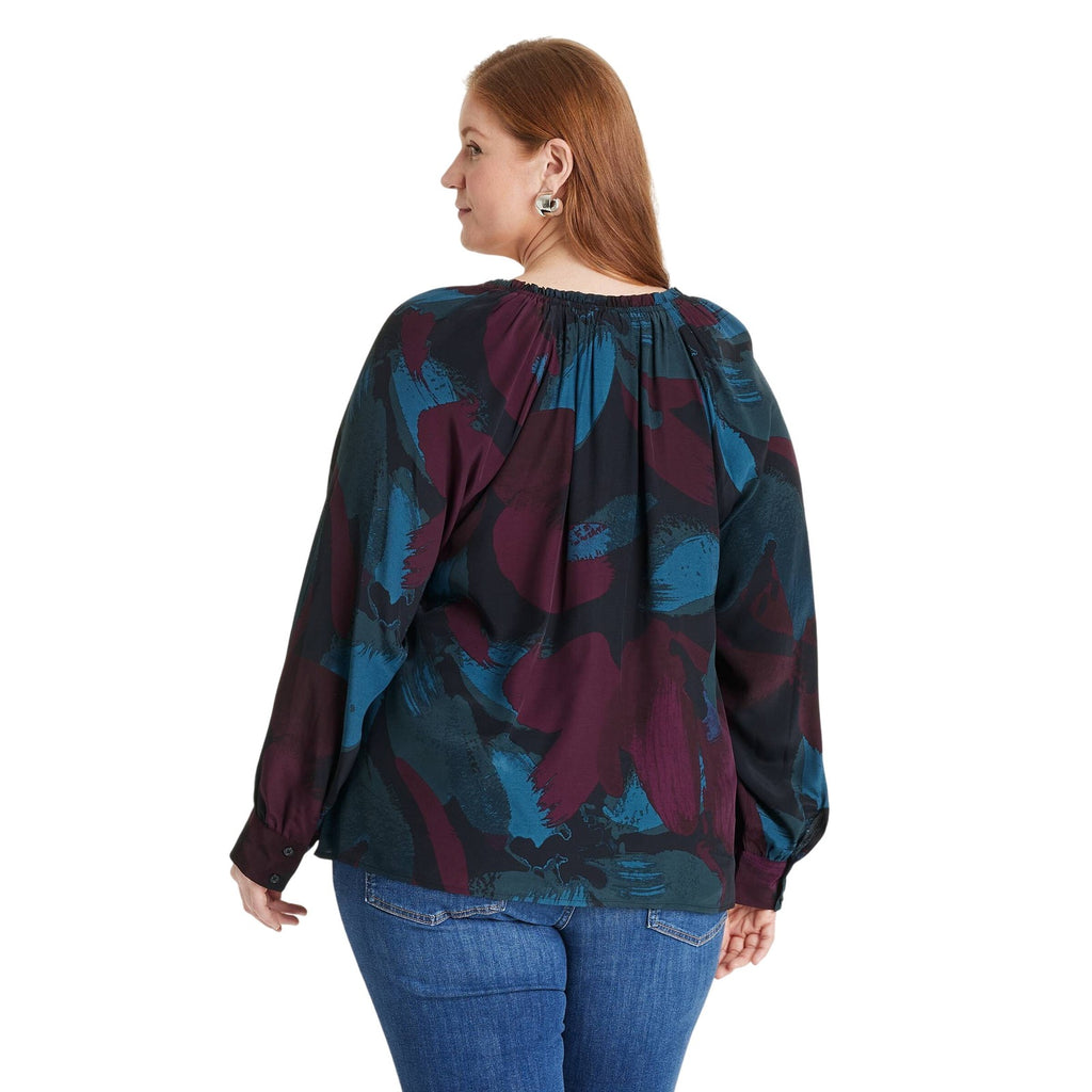 This Raglan Long-Sleeve Split-Neck Blouse from Ava & Viv effortlessly complements your on-trend style with feminine flair. Made from lightweight rayon, this pullover top is tailored in a loose fit with a tunic-length silhouette for versatile tucked, untucked or half-tucked styling with any pants or skirts from your wardrobe. It features a lovely ruffle-trimmed split neckline with soft gathers and a drawstring, along with long raglan sleeves featuring pleated cuffs cinched with button closures. Crepe blouse with split neck and drawstring Lightweight rayon construction Long raglan sleeves with buttoned cuffs Loose fit Tunic-length hem Sizing: Womens Plus Material: 100% Rayon Hem Style: Turnback Hem Fit: Loose Fit Cuff Type: Single Cuff Length: Below Hip Garment Style: Long Sleeve, Pullover Fabric Name: Crepe Neckline: Split Garment Details: No Pocket Garment back type: Plain Fabric Weight Type: Lightweight Fabric Garment cuff closure type: Button Garment sleeve style: Raglan Sleeve Care and Cleaning: Machine Wash, Tumble Dry