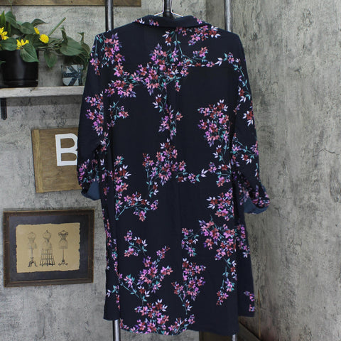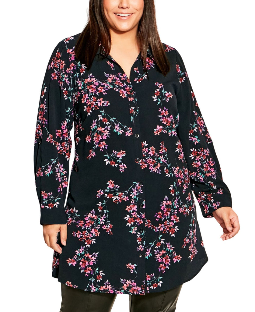 Classic design meets feminine style in the print shirt. This style features a shirt collar neckline, a button up front closure and long sleeves with button tab sleeves.