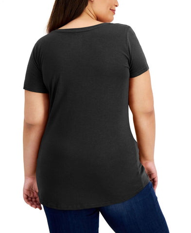 Anchor your casual look in this plus size T-shirt from Aveto, a pullover pick designed with an always flattering scoop neckline.