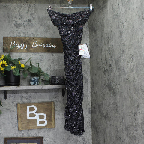B Darlin Juniors Glitter-Knit Off-the-Shoulder Dress U09AN20E Black / Silver XS