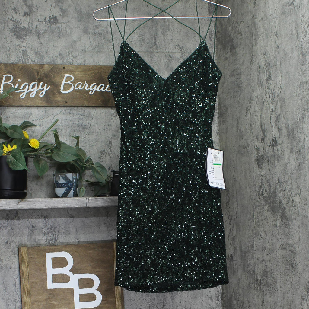 B. Darlin Juniors V-Neck Strappy-Back Mini Dress E78X981E Hunter Green L