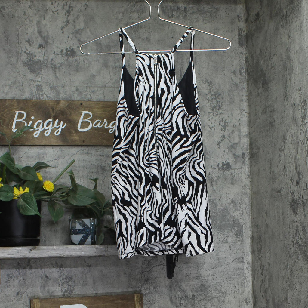 An exposed back zipper and a chic animal print come together flawlessly on this wildly stylish tank top from Bar Iii.