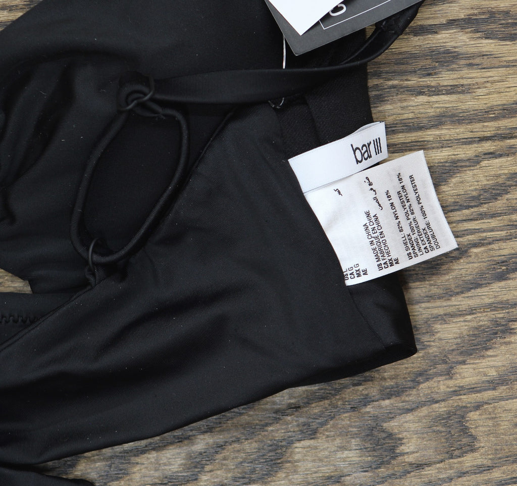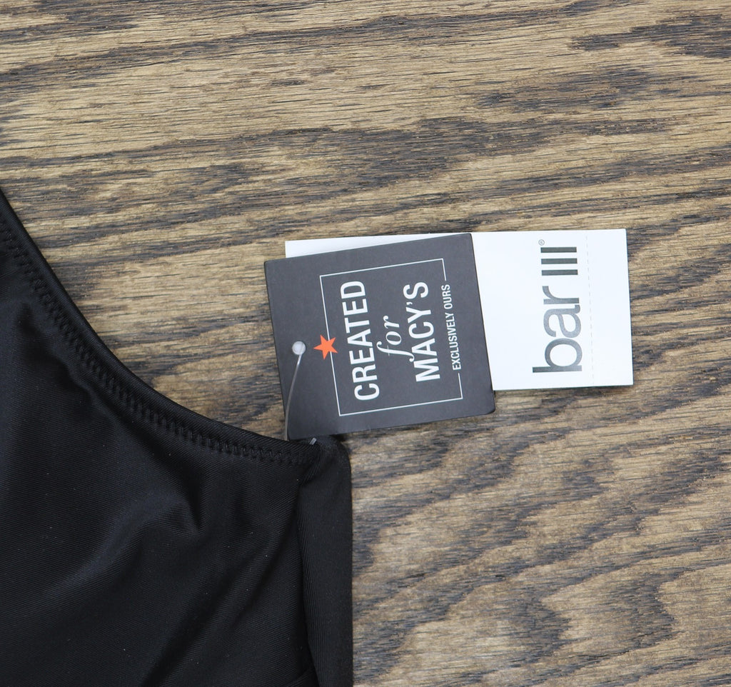 Elevate your style with the Bar III Women's Resort Solids Ring-Det Black L top. Crafted with a stretchy, supportive fabric, this versatile piece offers a comfortable and flattering fit. The sleek design and classic black color make it a wardrobe essential that can be dressed up or down for a variety of occasions. Whether you're lounging poolside or heading out for a night on the town, this top will keep you looking and feeling your best.